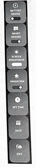 (7) SETTING: SMART REMIND/SCREEN BRIGHTNESS/ANIMATION/SET TIME/DATE