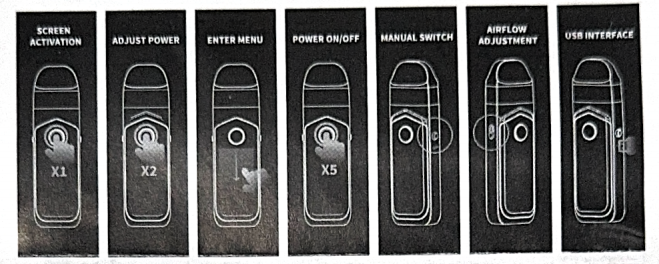 MANUAL SWITCH ON: Inhale through the mouthpiece or vape by pressing the Power Button.