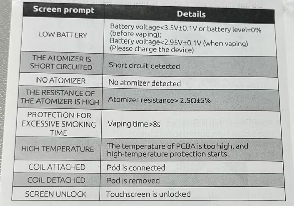 -STAY HYDRATED: when vaping more than 100p in 10 minutes in succession. - SCREEN BRIGHTNESS: Adjust the screen brightness.