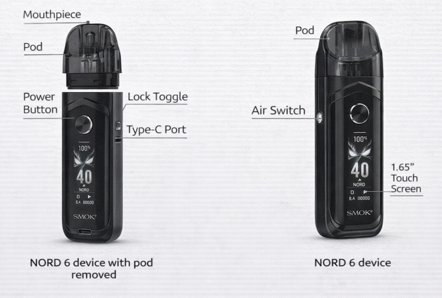 Equipped with two pod options (powered by the advanced Dual Core Dual Meshed and upgraded RPM3 coils), the NORD 6 efforlesy produces massive flavo and rich vapor. Backed by a vivid 1.65″ HD touch screen, an extra-large 3800mAh battery and 2.0A fast charging, it supports cusomizable vaping from 5-80W across three output modes, along with puff tracking and a 5mlL capacity for all-day enjoyment.