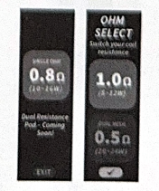 When inserting a pod,the device automatically identifies its type and display its resistance and power range.